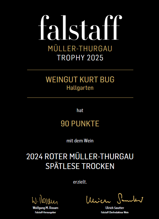 Wir haben unseren Roten Müller-Thurgau im Jahre 2016 auf einer Fläche von 1760 m², damals noch als Versuchsanlage, gepflanzt. Unser Roter Müller-Thurgau wurde auf einem Kies-Sand-Boden gepflanzt, allein hierdurch und durch unsere Qualitätsmaßnahmen streben wir einen geringen Ertrag von max. 40h/l an.